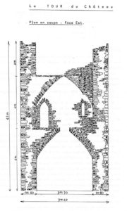 - une tour de plan carrée, haute de plusieurs étages dont celui, inférieur, est vouté et présente une trappe ménagée au centre de la voûte (par exemple au vieux château de Bruniquel). Perchées sur un roc escarpé, ces tours sont généralement abandonnées avant 1250.